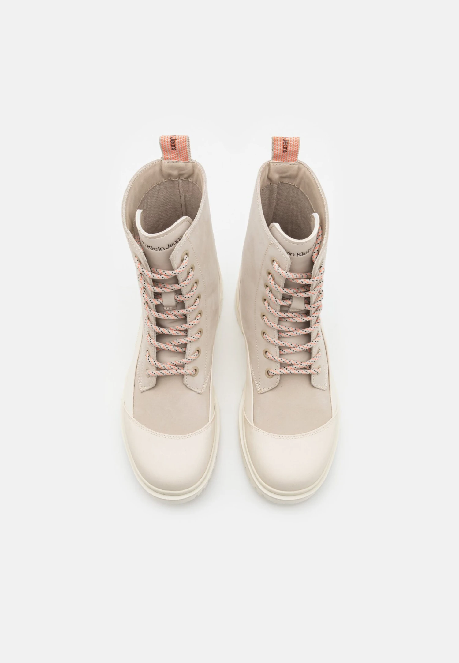 Calvin Klein Jeans Chunky Combat Laceup Boot- Lace-Up Ankle Boots – Eggshell/Creamy White